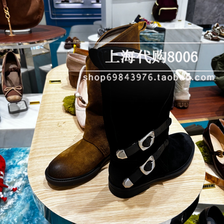 Joy&Peace真美诗2025冬季女靴双皮带饰扣中筒靴西部靴女中靴2B01A