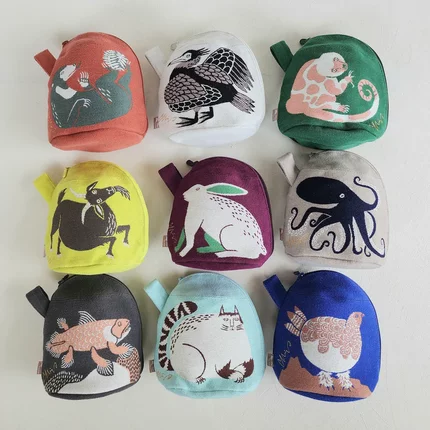日本绘画家MoritaMIW动物图案化妆包单肩包零钱袋拉链包收纳挂包