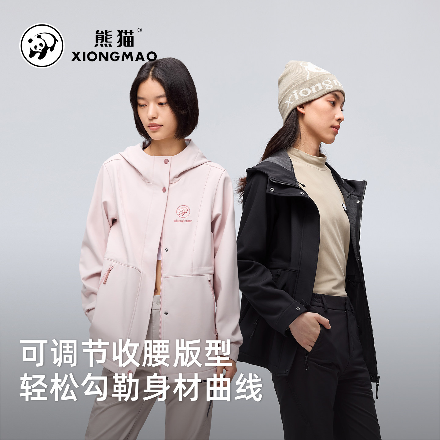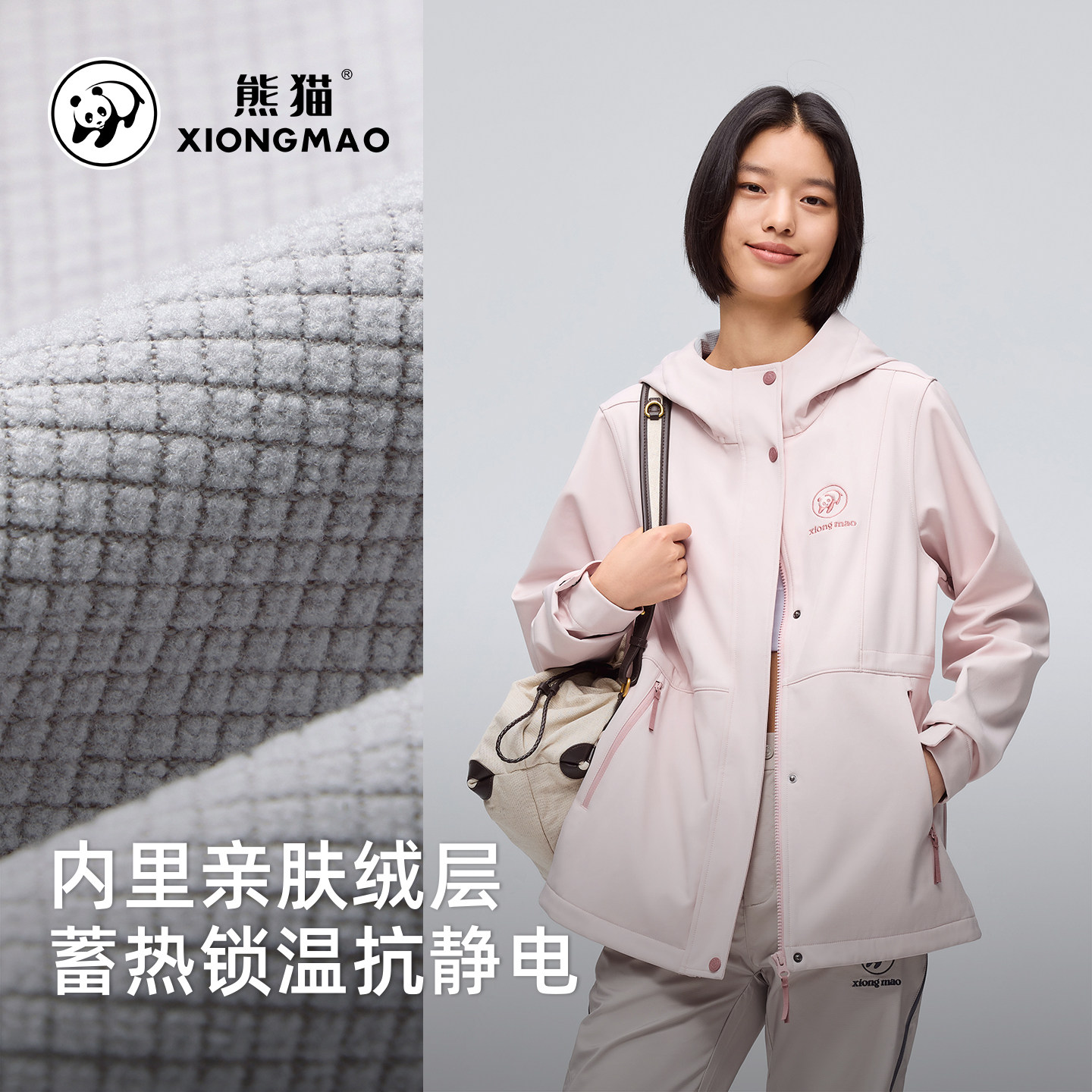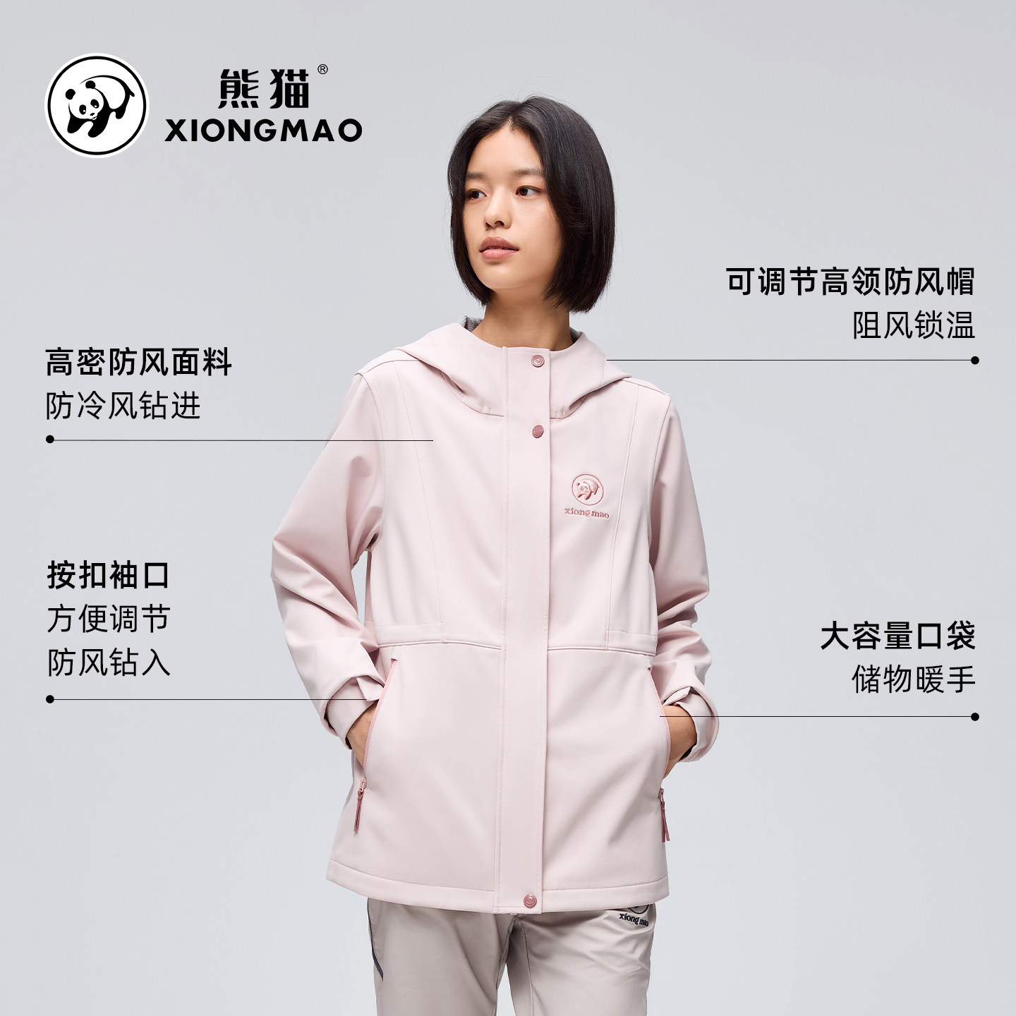 骆驼熊猫系列户外加绒软壳衣女款2025新款防风衣秋冬收腰粉色外套