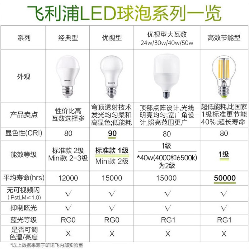 飞利浦led灯泡E27螺口超亮家用螺旋螺纹口护眼8w暖光9w吊灯节能灯
