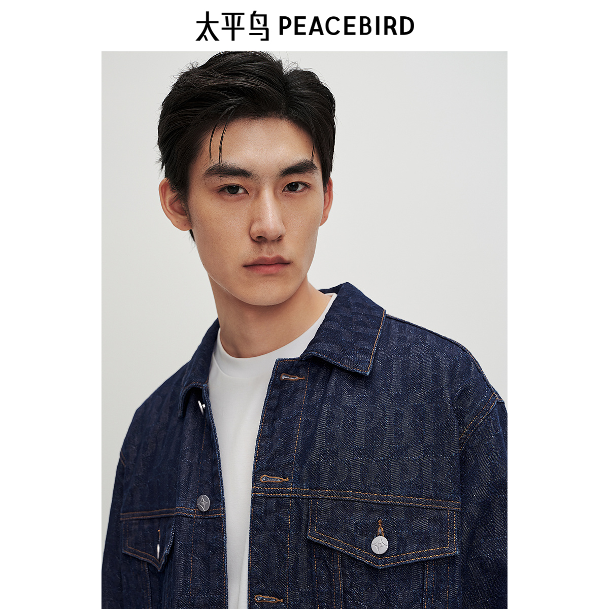 太平鸟男装满版提花牛仔夹克24秋新款宽松茄克潮流外套BWBJE3196