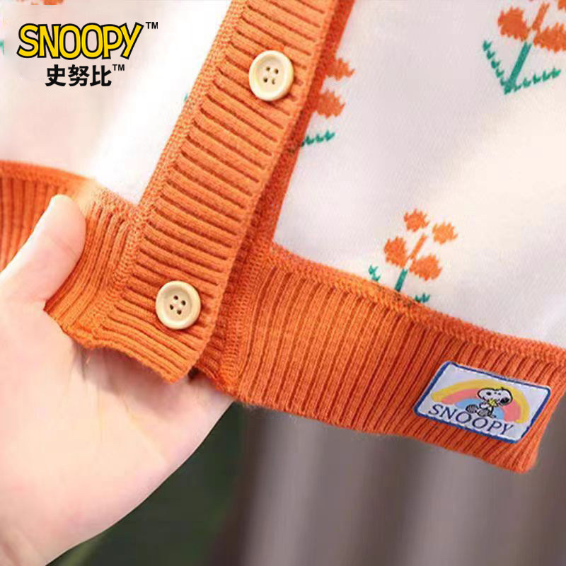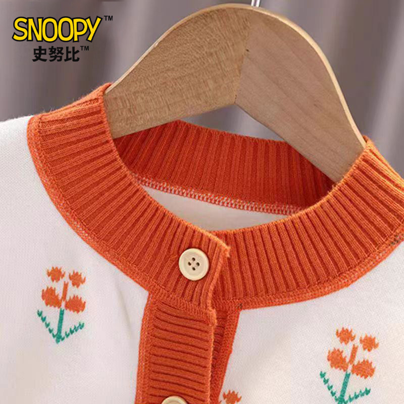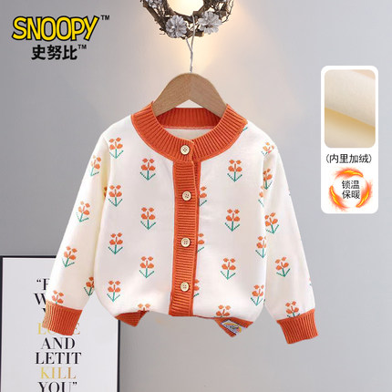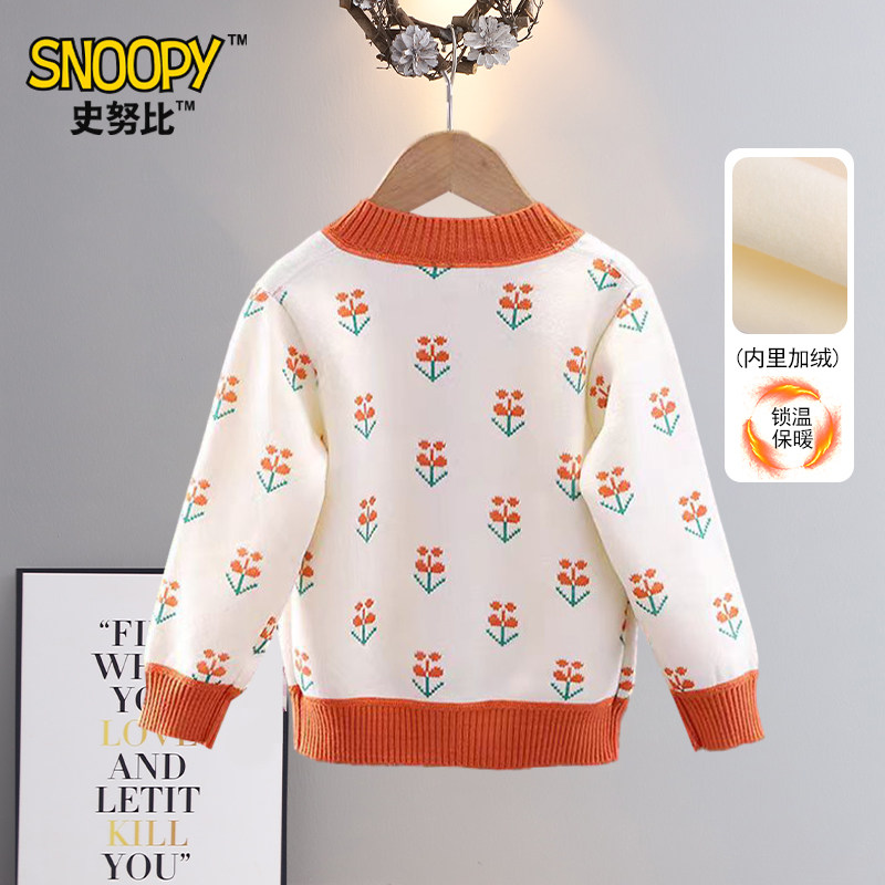 史努比秋冬女童碎花针织开衫毛衣女宝套头圆领小清新撞色加绒上衣