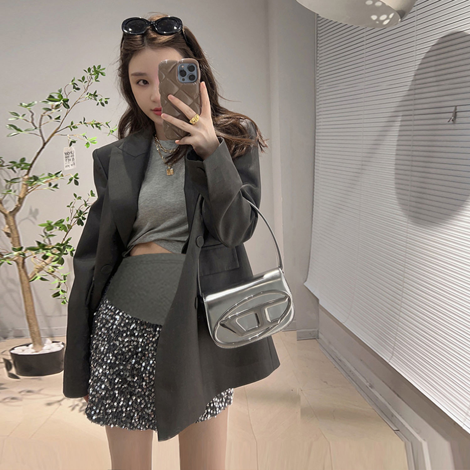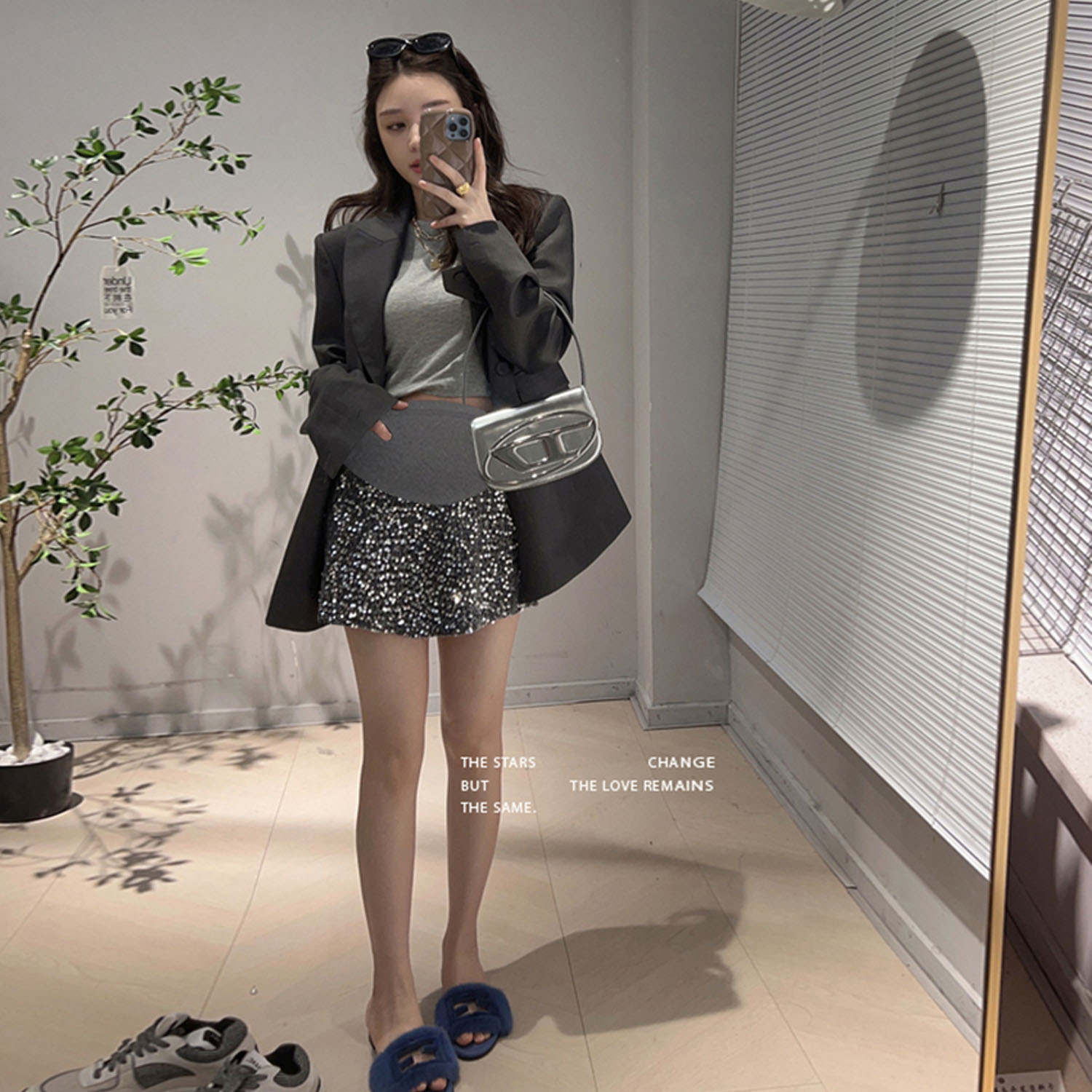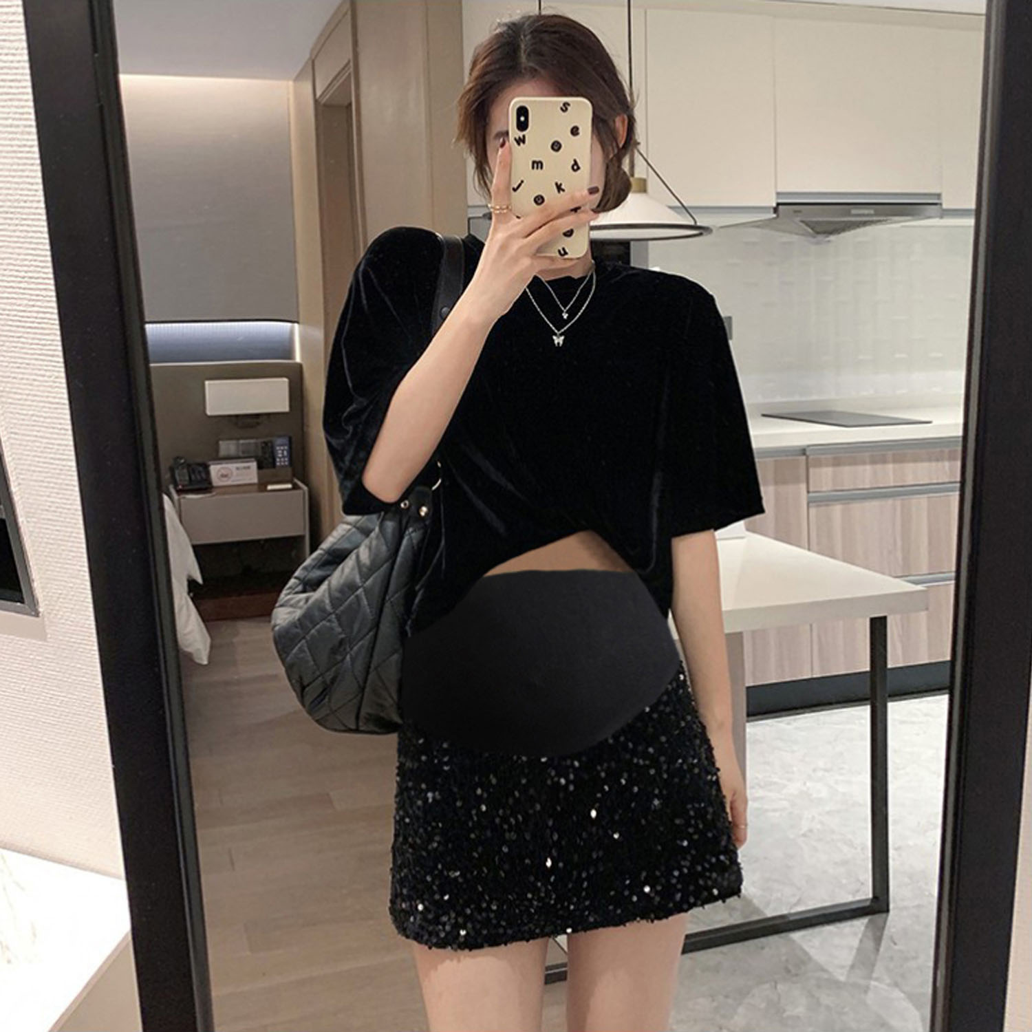 孕妇亮片半身裙秋装2025新款小个子黑色显瘦托腹A字包臀短裙秋冬