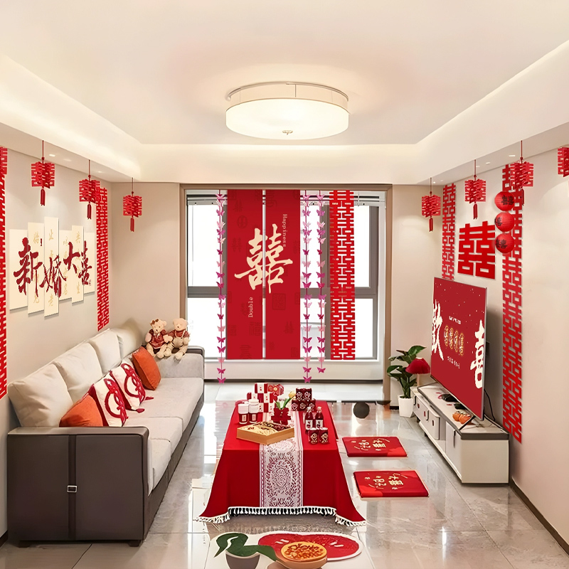 婚房布置套装女方卧室客厅墙面彩带婚礼布置装饰拉花婚庆用大全