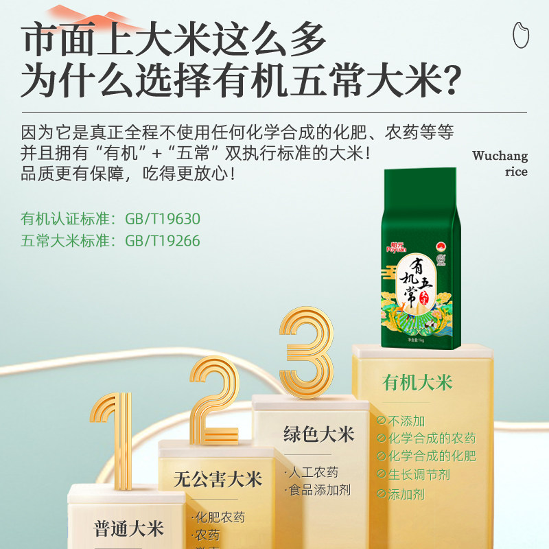 当季新米舶元有机五常大米1kg东北大米真空小袋装地标GB/T19266