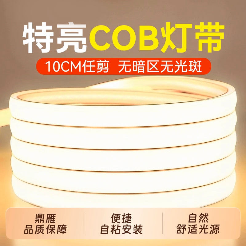 鼎雁cob自粘灯带LED超亮高压220v户外防水家用客厅吊顶工程软灯条