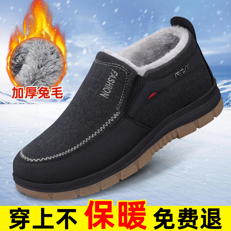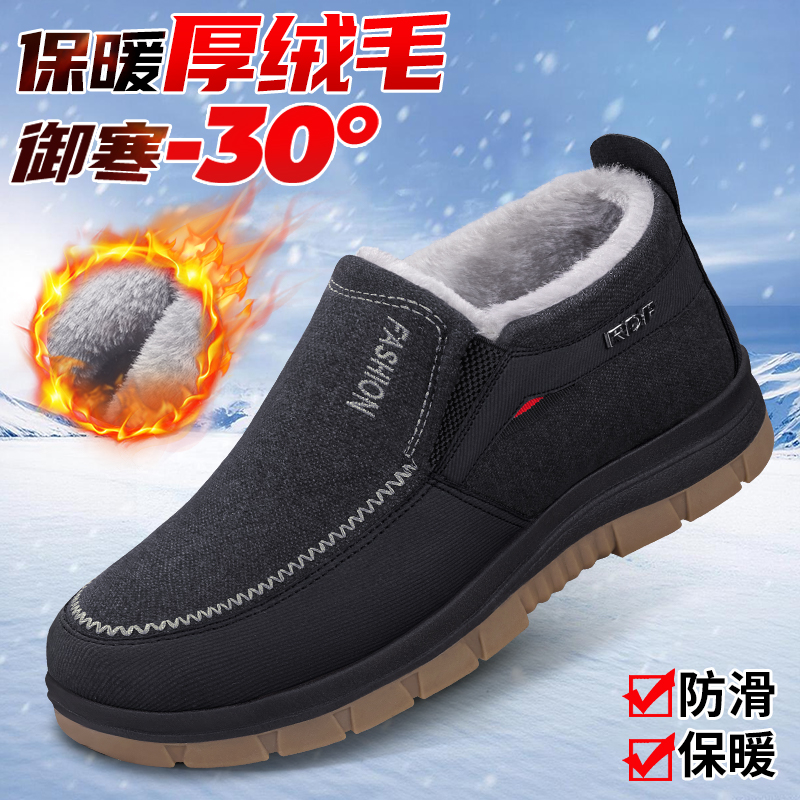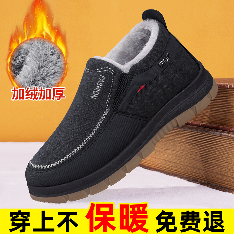 老北京布鞋官方旗舰店男款冬季新款加绒加厚防滑中老年人爸爸棉鞋