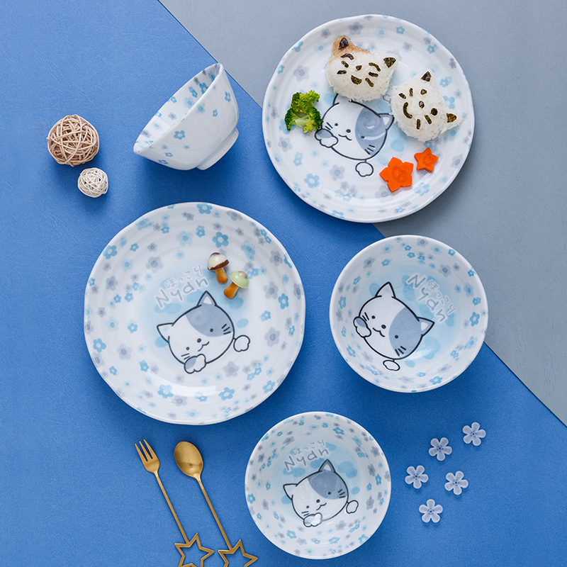 日本有古窑进口小碗卡通儿童餐具 日式小猪可爱猫陶瓷钵饭碗盘子