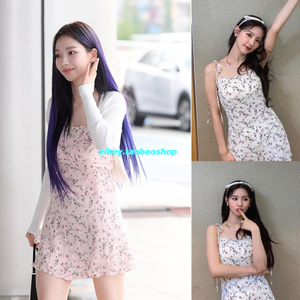eihey诶嘿柳智敏叶舒华同款法式甜美碎花吊带连衣裙收腰a字短裙子