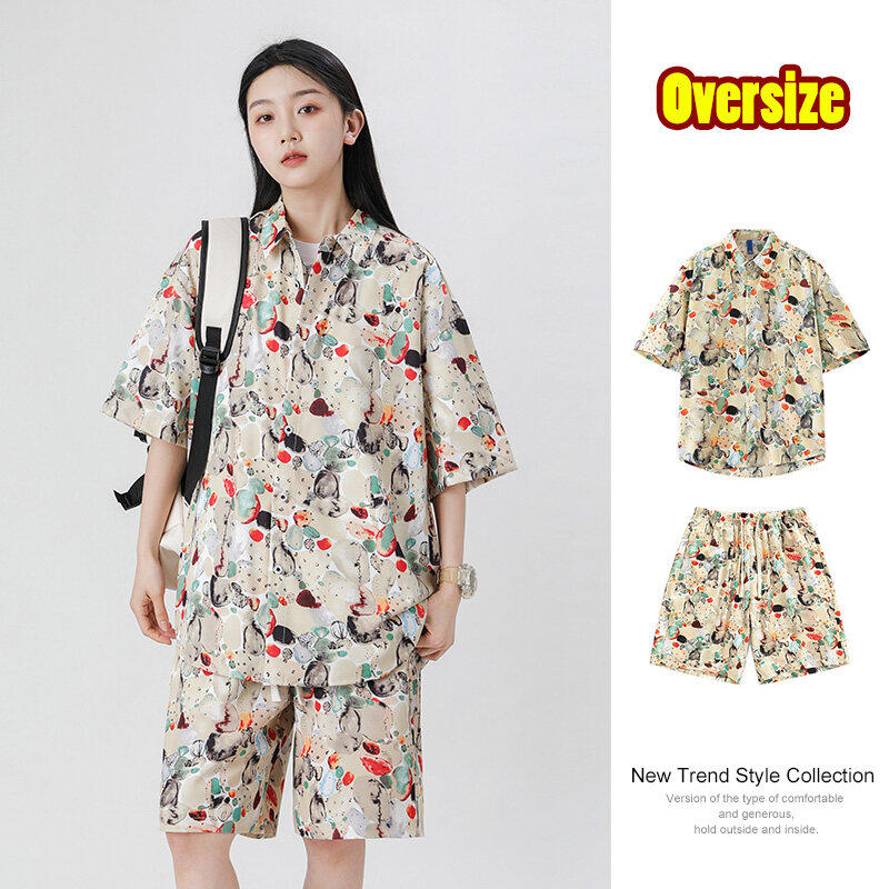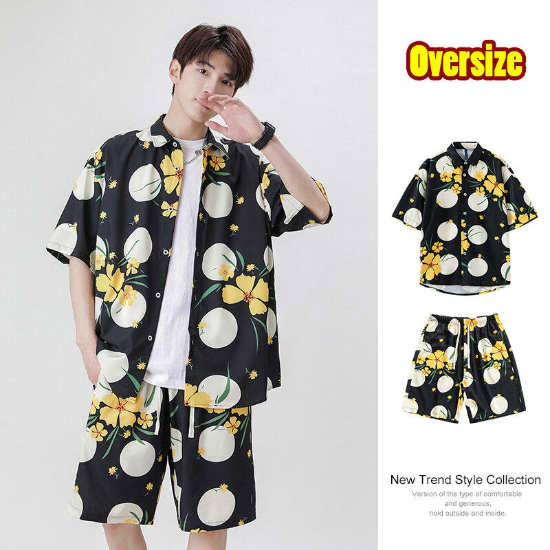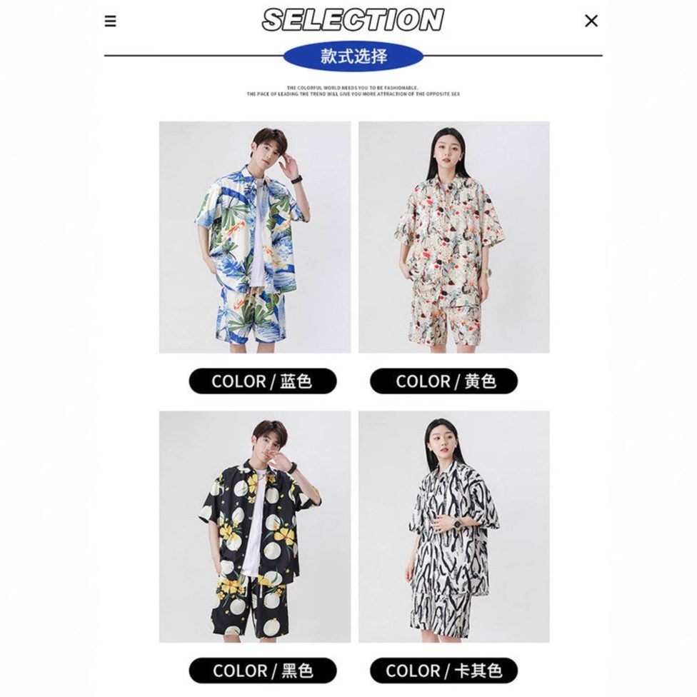 夏威夷衬衫男夏季休闲速干透气短袖宽松沙滩花短裤度假套装情侣