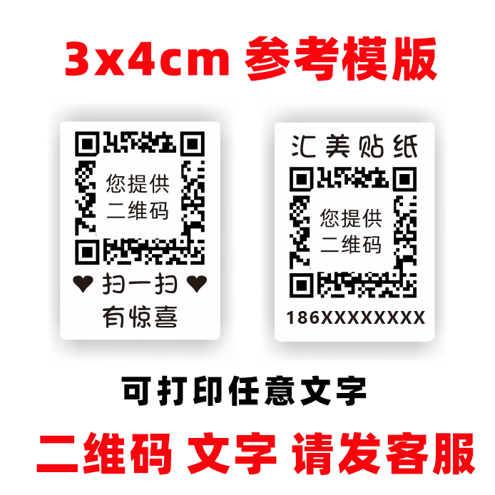 好友二维码贴纸定制流水号不干胶打印微商广告条码食品小标签防水