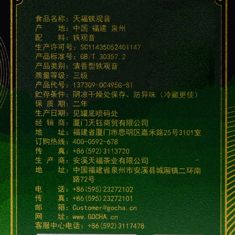 天福茗茶茶叶 乌龙茶叶安溪清香铁观音大铁罐铁观音495g