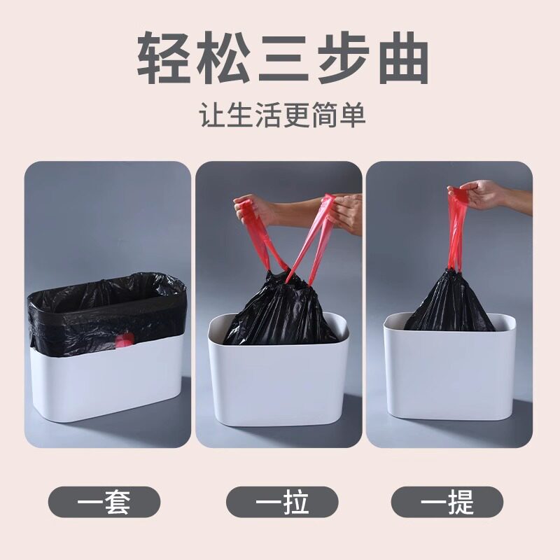抽绳垃圾袋家用加厚免撕式黑色大号厨房自动收口实惠装清洁塑料袋