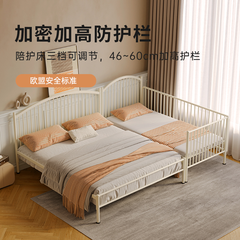 天坛家具官方正品铁艺拼接床带护栏儿童拼接神器陪护床无漆无胶