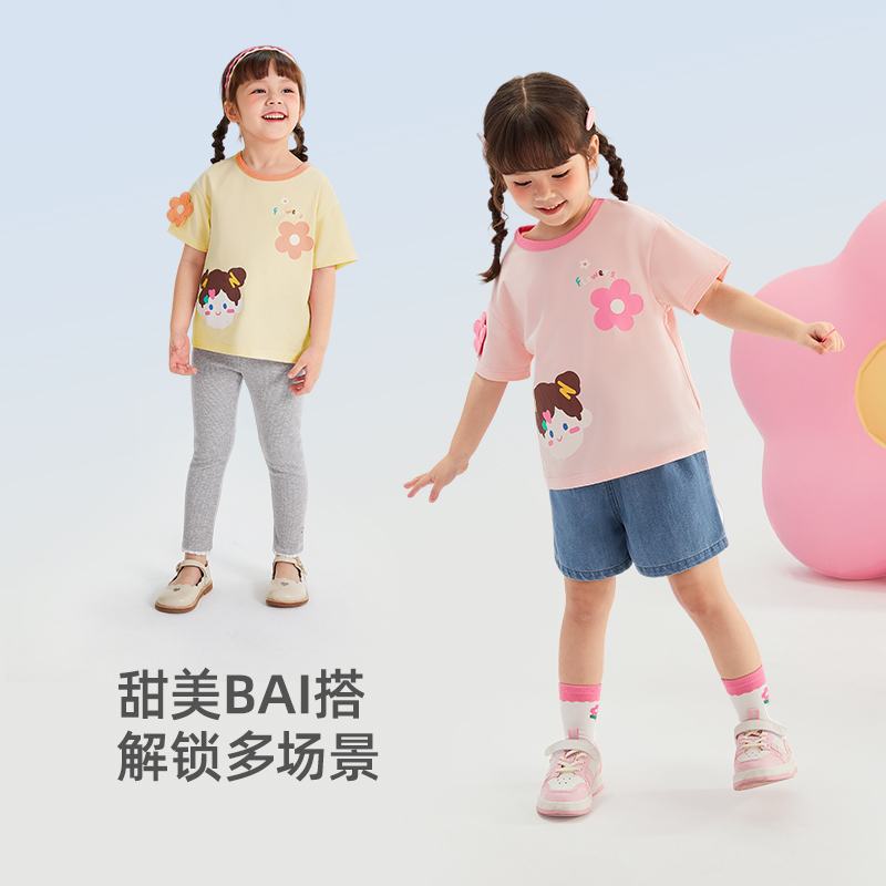 t恤女童夏季儿童甜美上衣夏款婴幼童圆领衣服夏装2-5岁女宝宝短袖