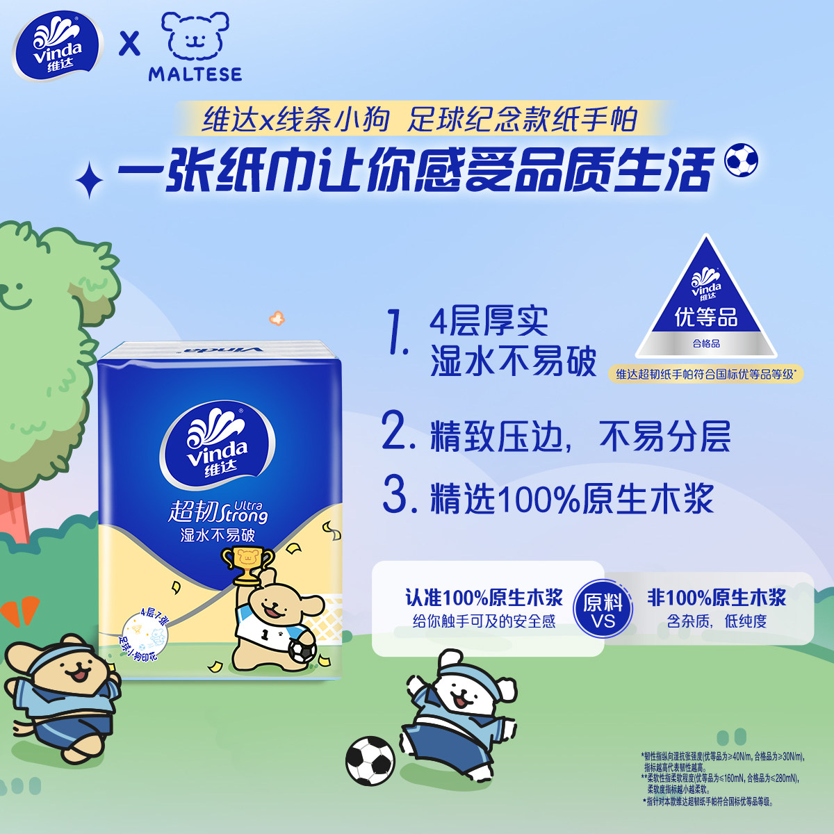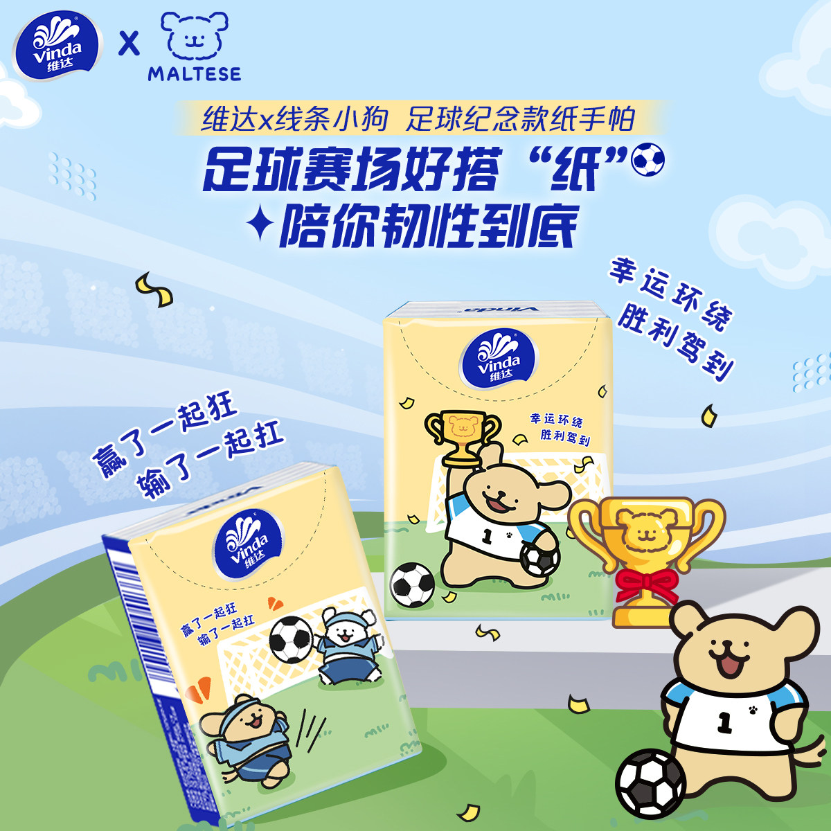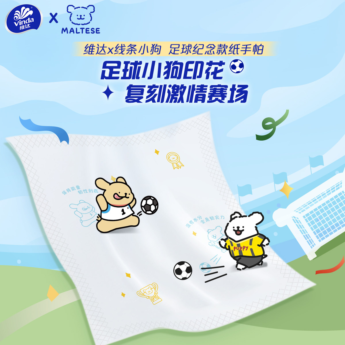 【88vip】维达×线条小狗足球纪念款12包手帕纸学生出行便携餐巾