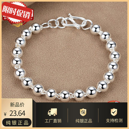 正品苏州银楼足银手链S999女圆珠子纯银手链大人宝宝2024婴儿脚链