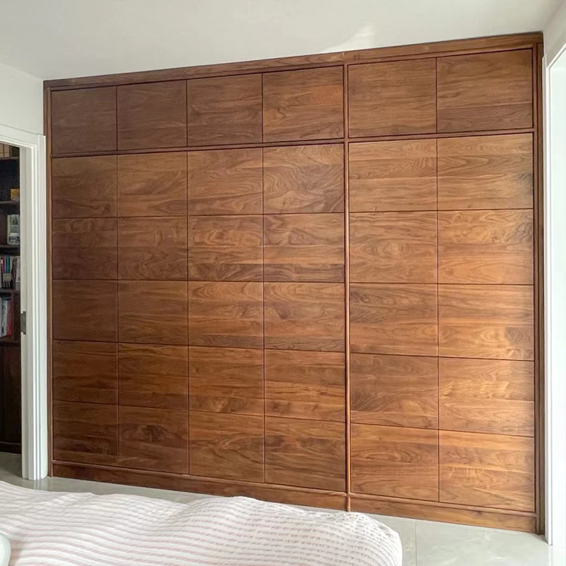 北欧日式原木黑胡桃木樱桃木全实木大衣柜整体定制卧室衣帽间订做