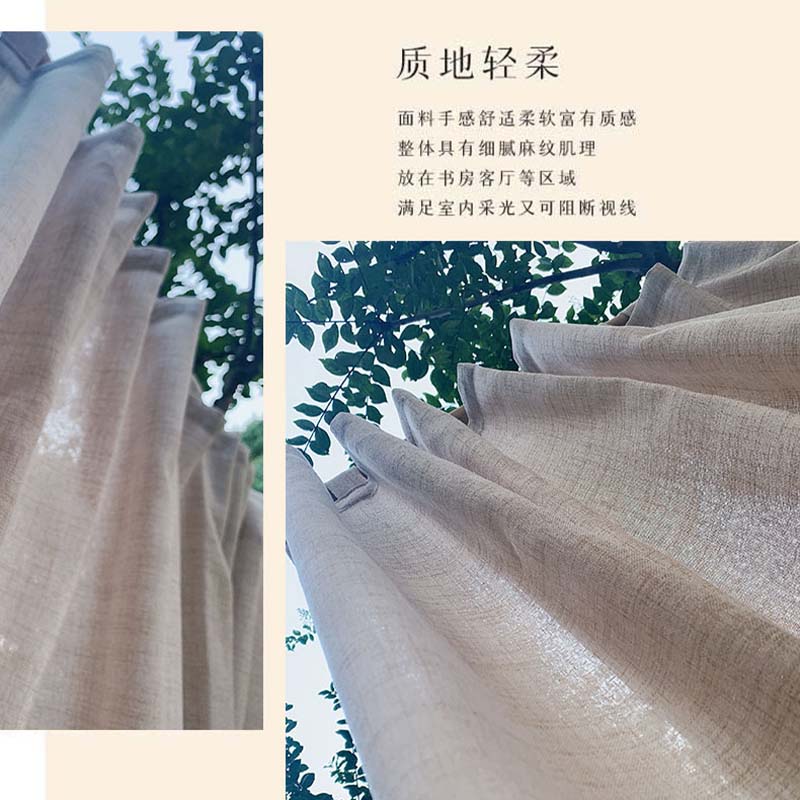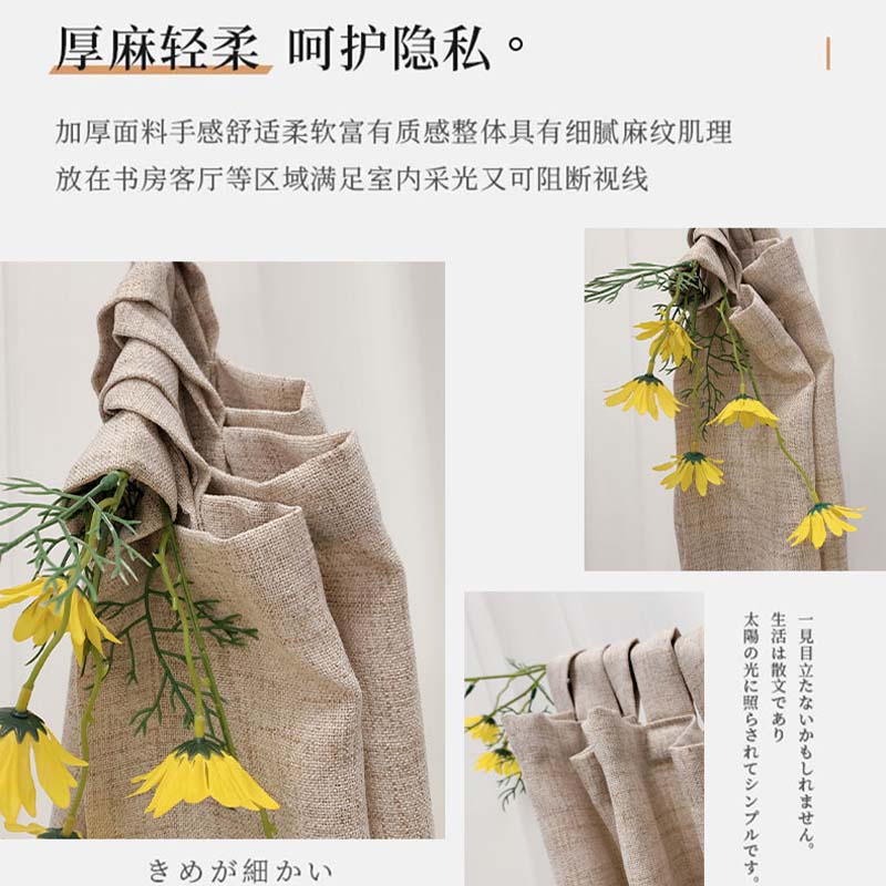 日式亚麻窗帘纱帘透光不透人原木隔断门帘阳台卧室遮光免打孔棉麻