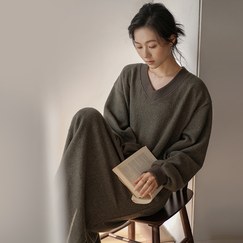 无谓2025秋新款女装宽松直筒长款过膝气质围脖两件套针织连衣裙女