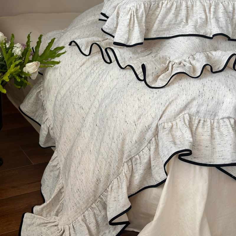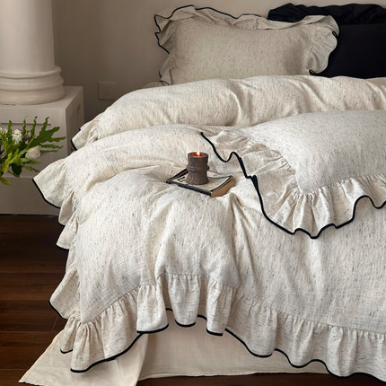 法式公主风双层纱四件套纯棉全棉花边被套1.8m高级感裸睡床上用品
