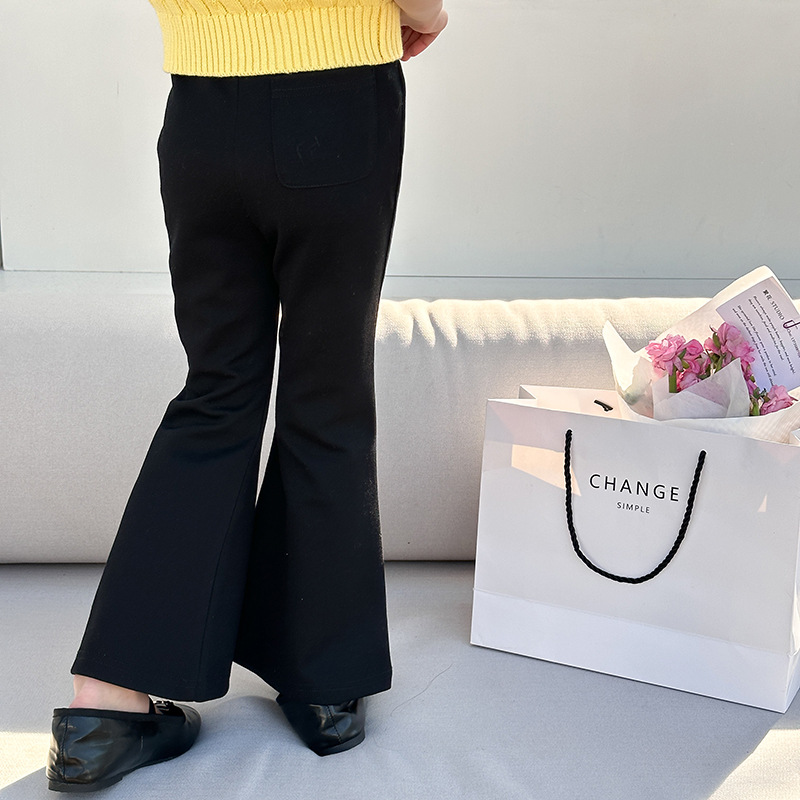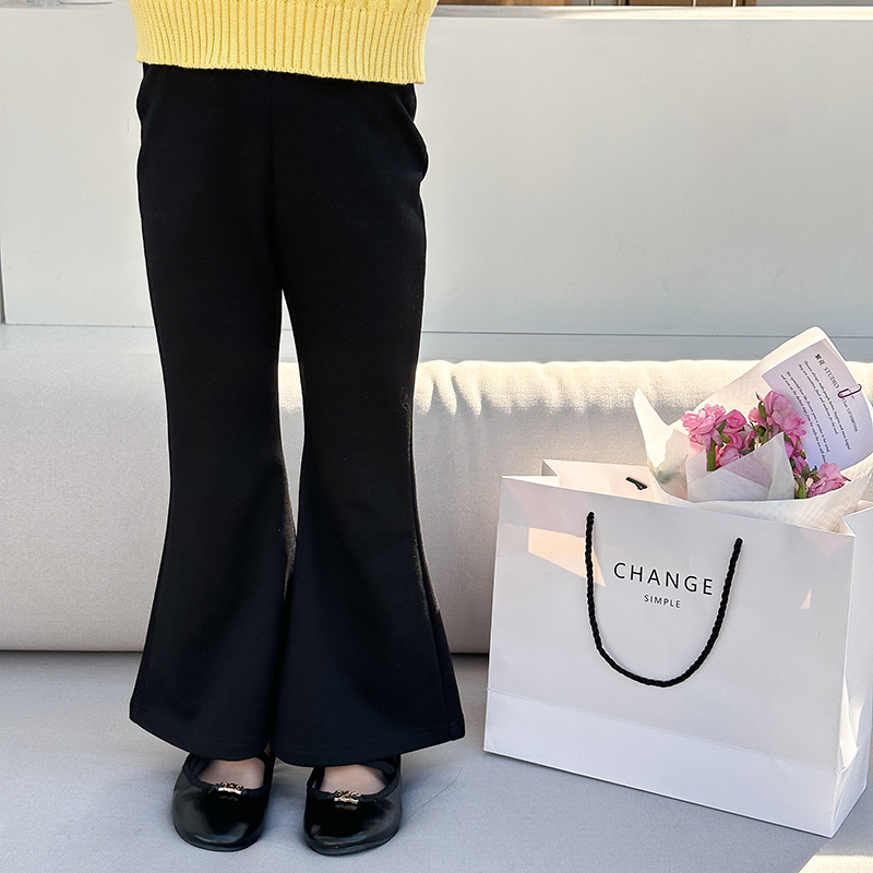 2024春秋季款童裤儿童韩版修身长裤子女童洋气复古大喇叭裤长裤