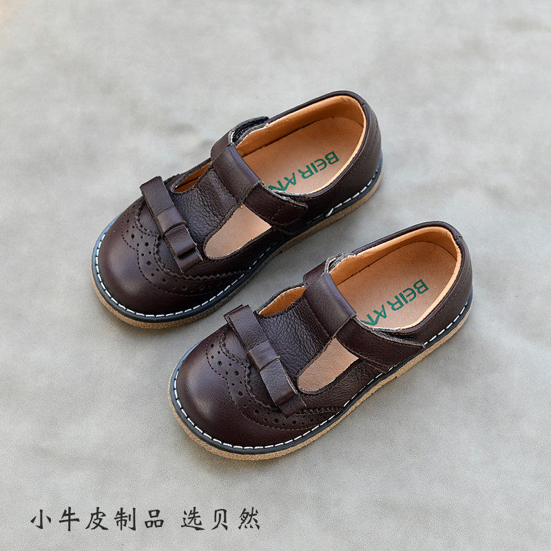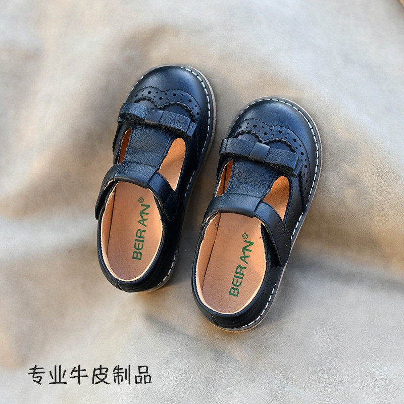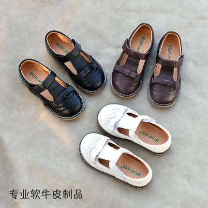 贝然女童皮鞋英伦真皮春节单鞋洛丽塔公主软底复古女宝宝甜美丁字