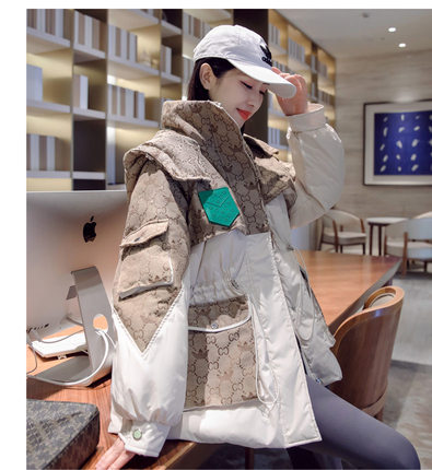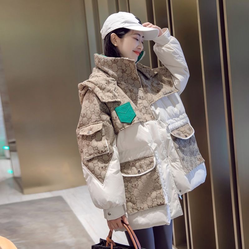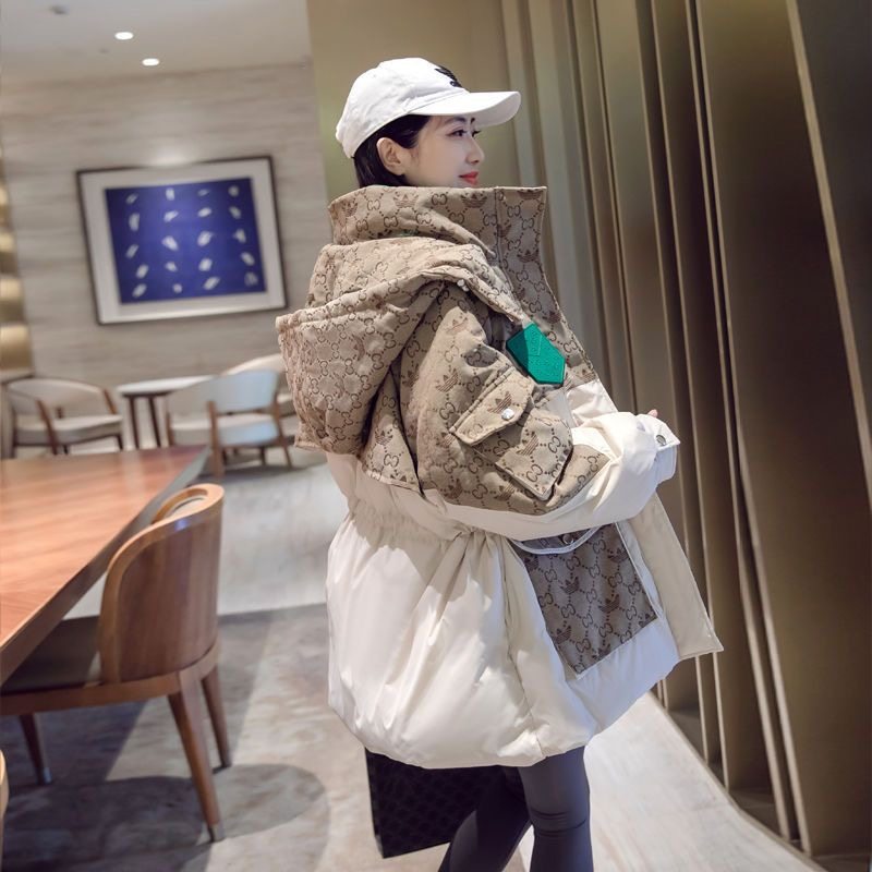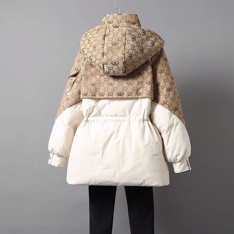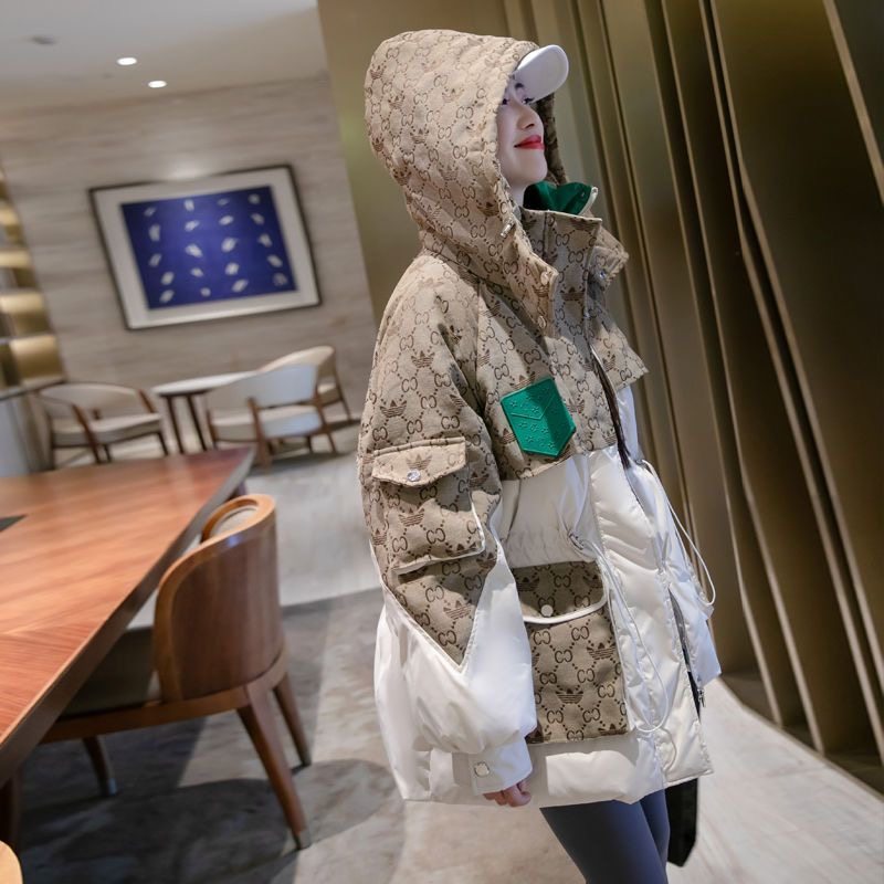 欧洲站大牌羽绒服女装2024新款韩版拼接中长款加厚宽松白鸭绒外套