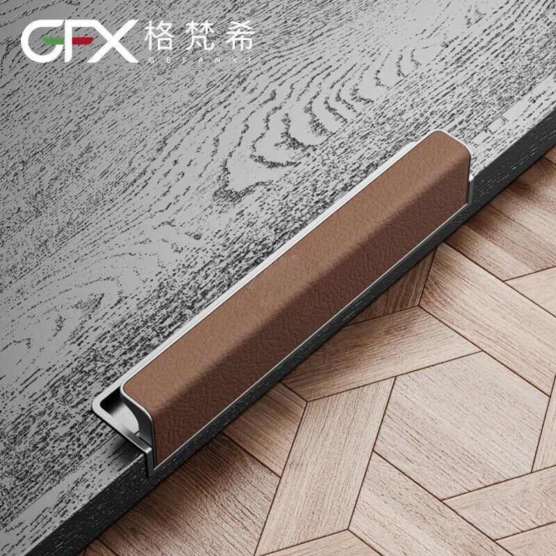 意式皮革门拉手隐形嵌入开槽暗拉手衣柜门铝框灰色暗藏棕色暗把手