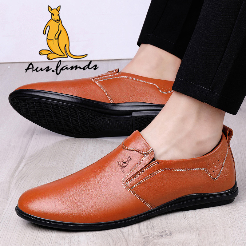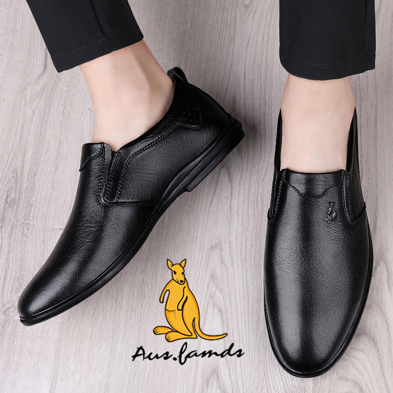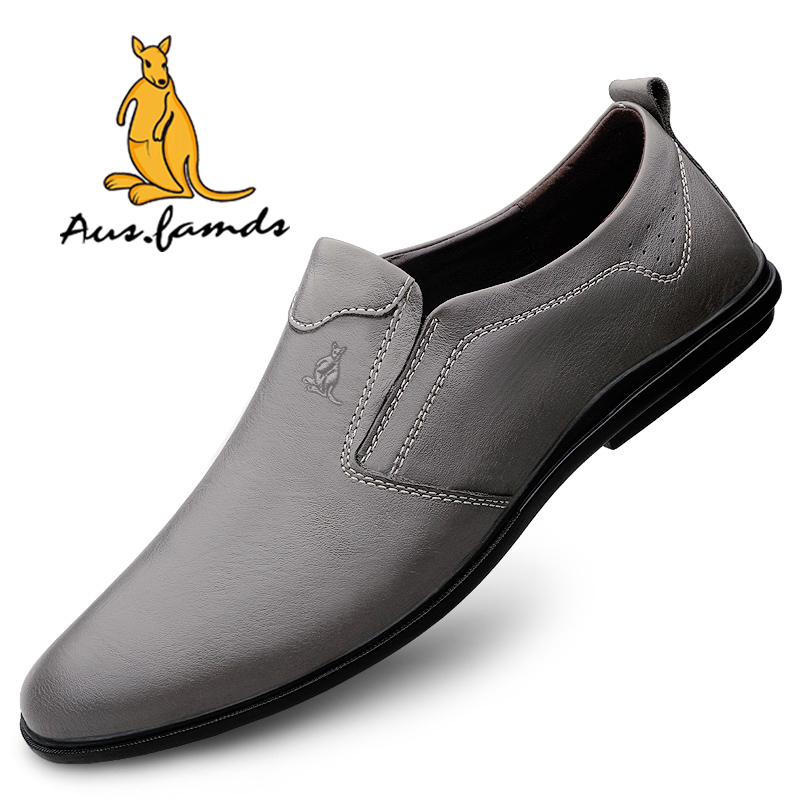 AUSFAMDS/澳洲名袋鼠夏季新款休闲皮鞋男真皮软底一脚蹬爸爸鞋男