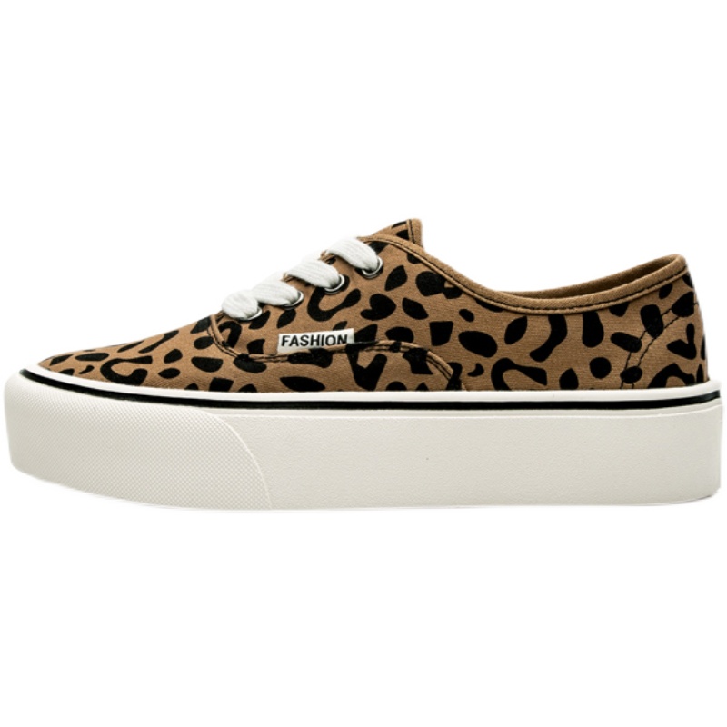 厚底增高豹纹鞋帆布鞋女2021年新款春秋季小众休闲布鞋一脚蹬百搭