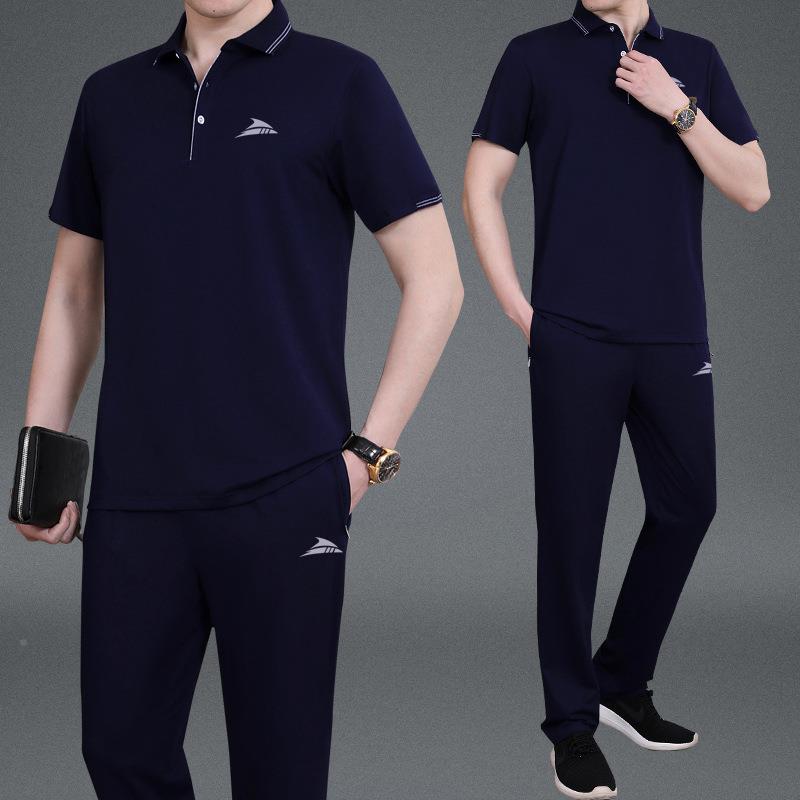 爸爸夏装套装中裤年男士短袖档长两冰件套中老LJLJ年父亲高丝棉