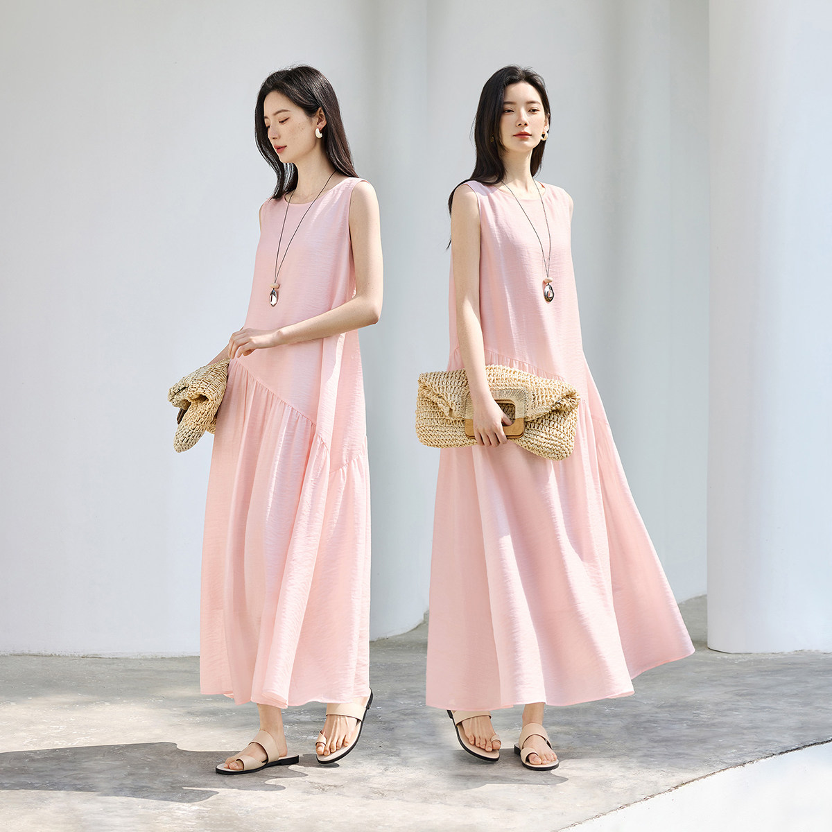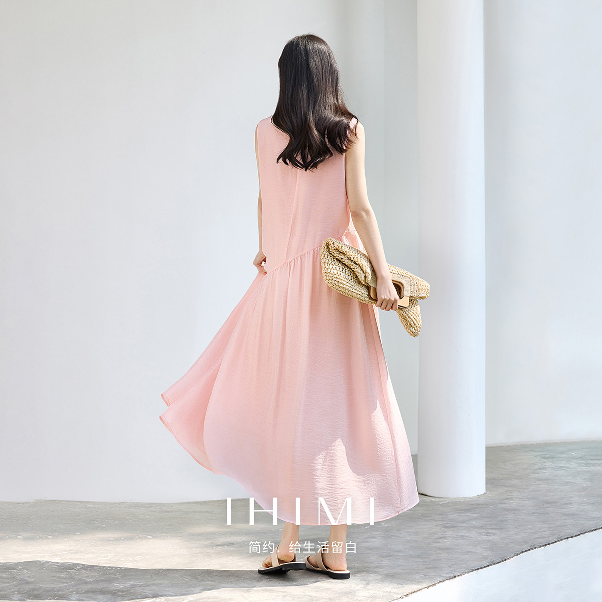 IHIMI海谧海岛假日莱赛尔无袖连衣裙女2025夏季轻薄浪漫大摆裙子