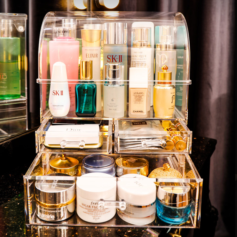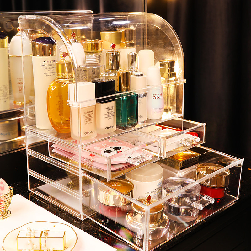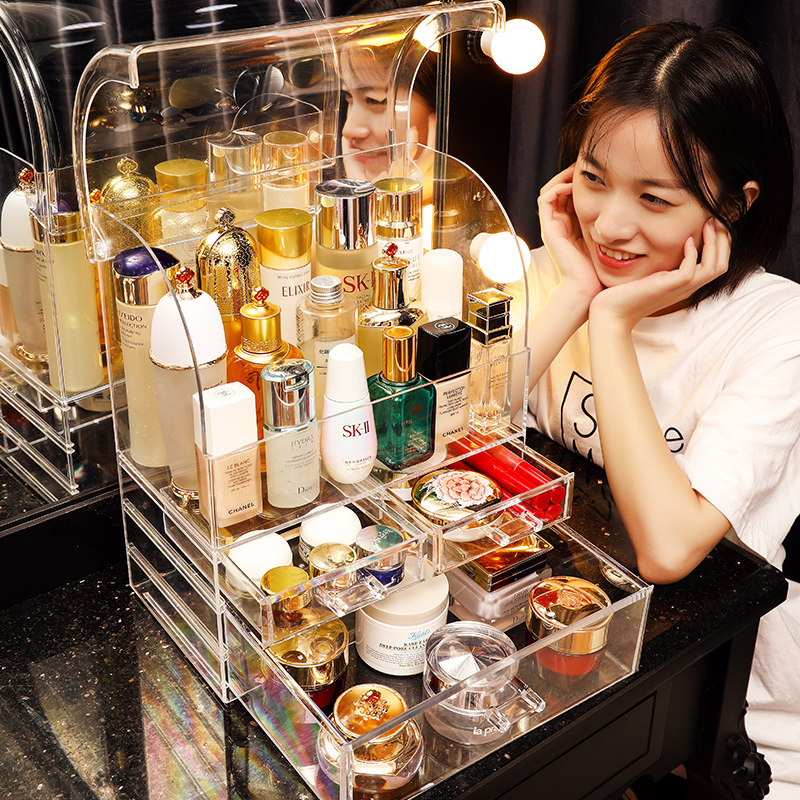 化妆品收纳盒桌面化妆盒网红透明防尘口红盒抽屉式置物架亚克力大