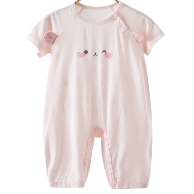 婴儿连体衣夏季莫代尔零碳凉感男女宝宝熊猫提花短袖9分裤睡衣服