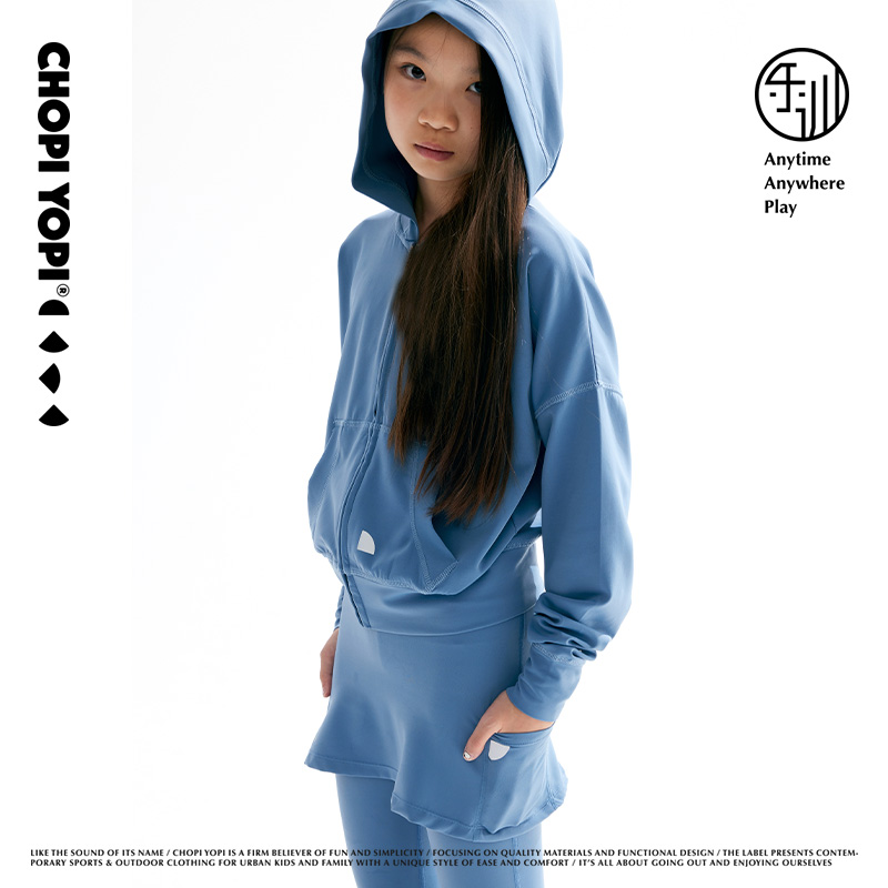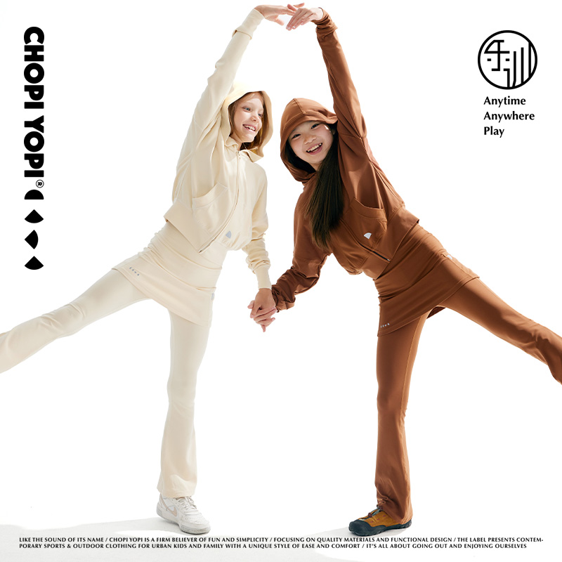 chopiyopi童装 儿童连帽开衫春秋新款女童空气瑜伽运动卫衣外套