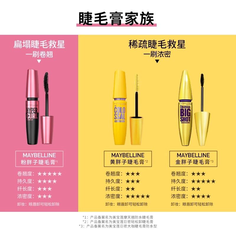 【自营】美宝莲摩天翘睫毛膏粉胖子蓝胖子防水纤长卷翘不易晕染