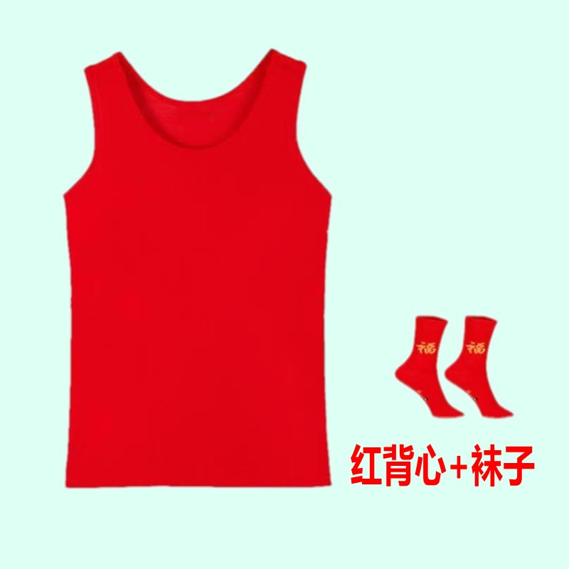 本命年大红色女士背心纯棉红内衣红内裤红袜子结婚红色大码套装女