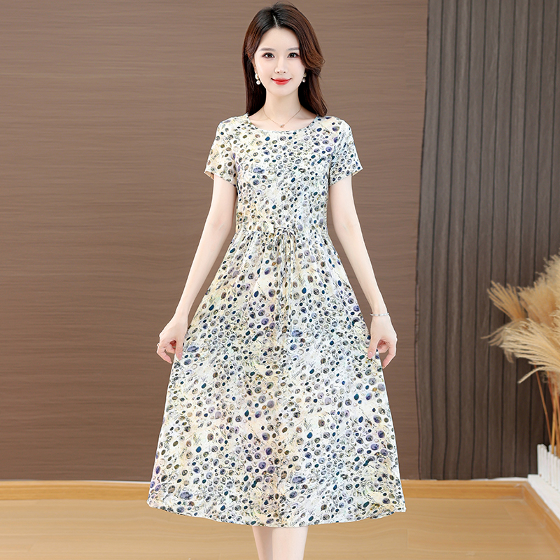 2025年夏季新款时尚棉绸连衣裙女修身显瘦人造棉旅游度假长款裙子