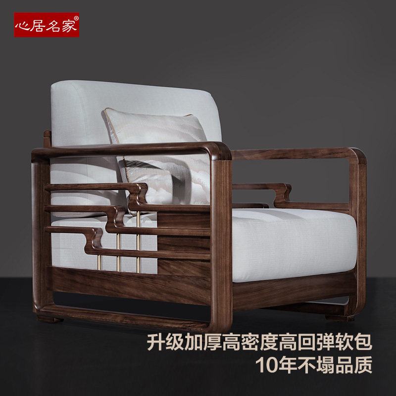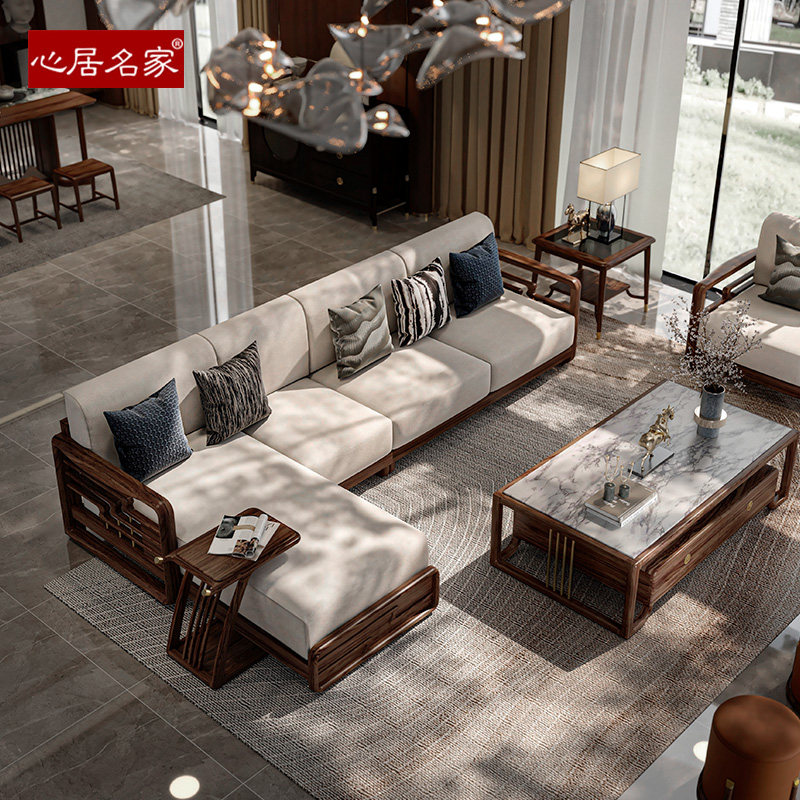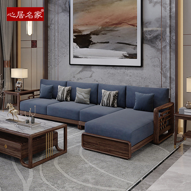 心居名家实木沙发组合现代轻奢客厅家具乌金木贵妃转角布艺新中式