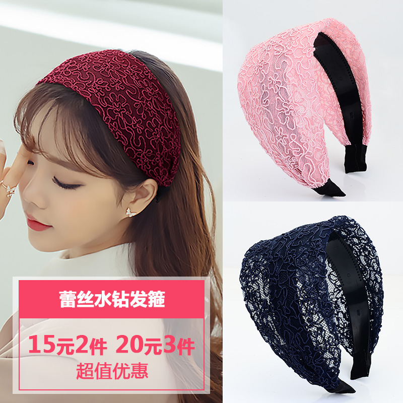 蕾丝水钻发箍女发卡防滑宽边带齿压发头箍洗脸发带头饰发饰妈妈