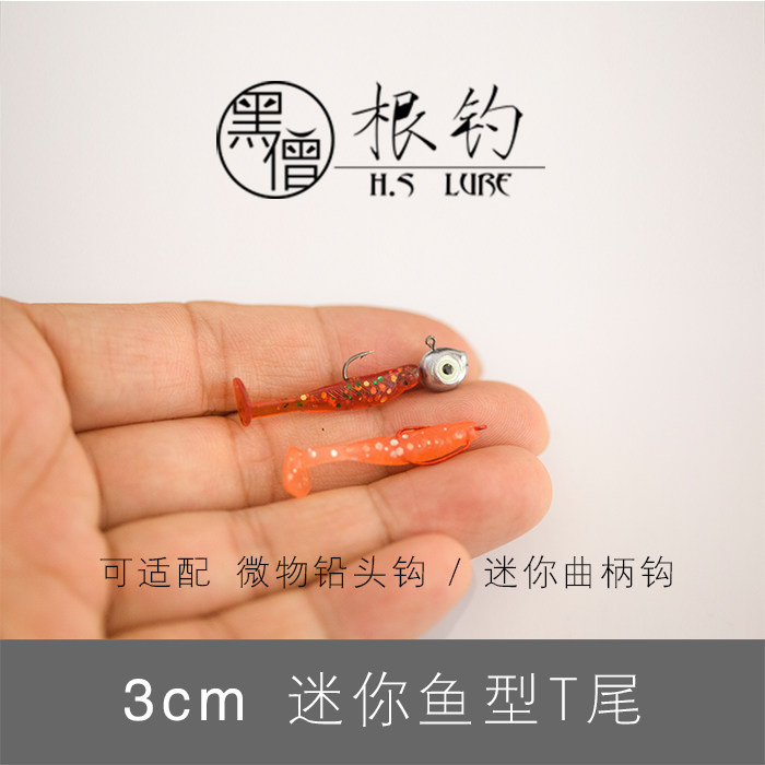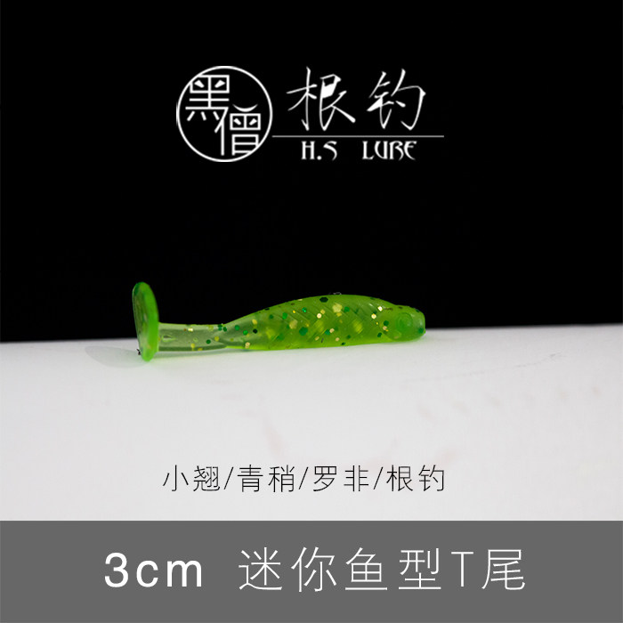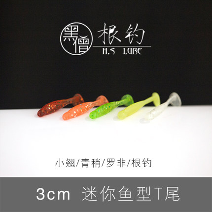 黑僧根钓3cm小T尾微物黑头六线鱼青稍翘嘴鳜鱼石九公桃花黄翅罗非
