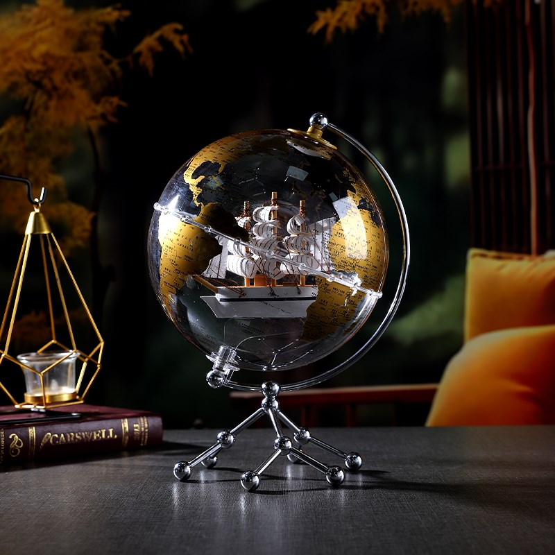透明帆船地球仪摆件轻奢高u档客厅家居装饰品带灯办公室桌面工艺
