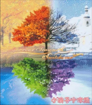 小房子十字绣 DMC-四季之树-混色-金属线 满绣春夏秋冬