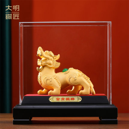 大明铜匠绒沙金招财貔貅摆件玄关客厅装饰品乔迁新居礼品开业大吉