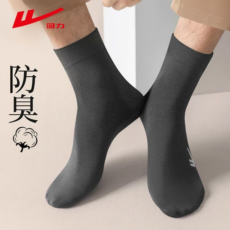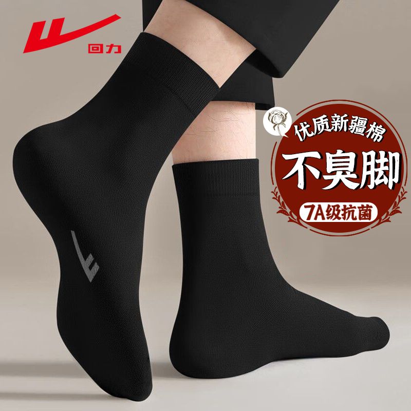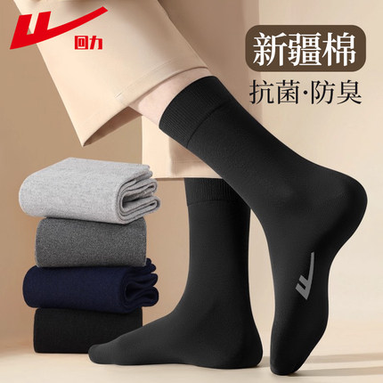 回力100%正品袜子男款纯色新疆棉抗菌秋冬四季款吸汗防臭中筒长袜