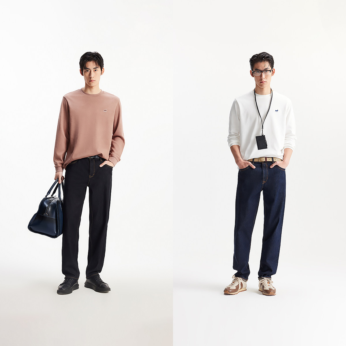 绫致杰克琼斯秋冬长袖T恤百搭休闲宽松法斗狗刺绣圆领上衣