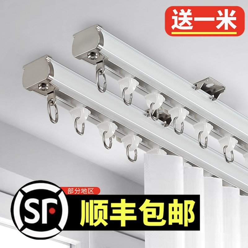 轴承轮静音铝合金窗帘轨道滑轨滑轮顶装侧装导轨窗帘杆单轨双直轨