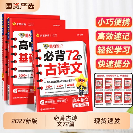 2026高考必背古诗文72篇高中必背古诗文古诗词理解性默写古代文化常识高考语文必备新课标教辅资料书试题调研随身速记小本天星教育