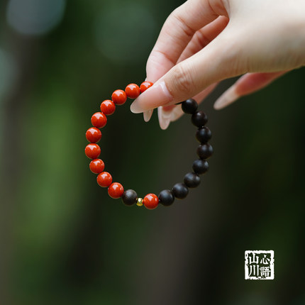 火焰纹南红手串天然满肉牛血收藏级保山红色宝石玛瑙文莱沉香手链